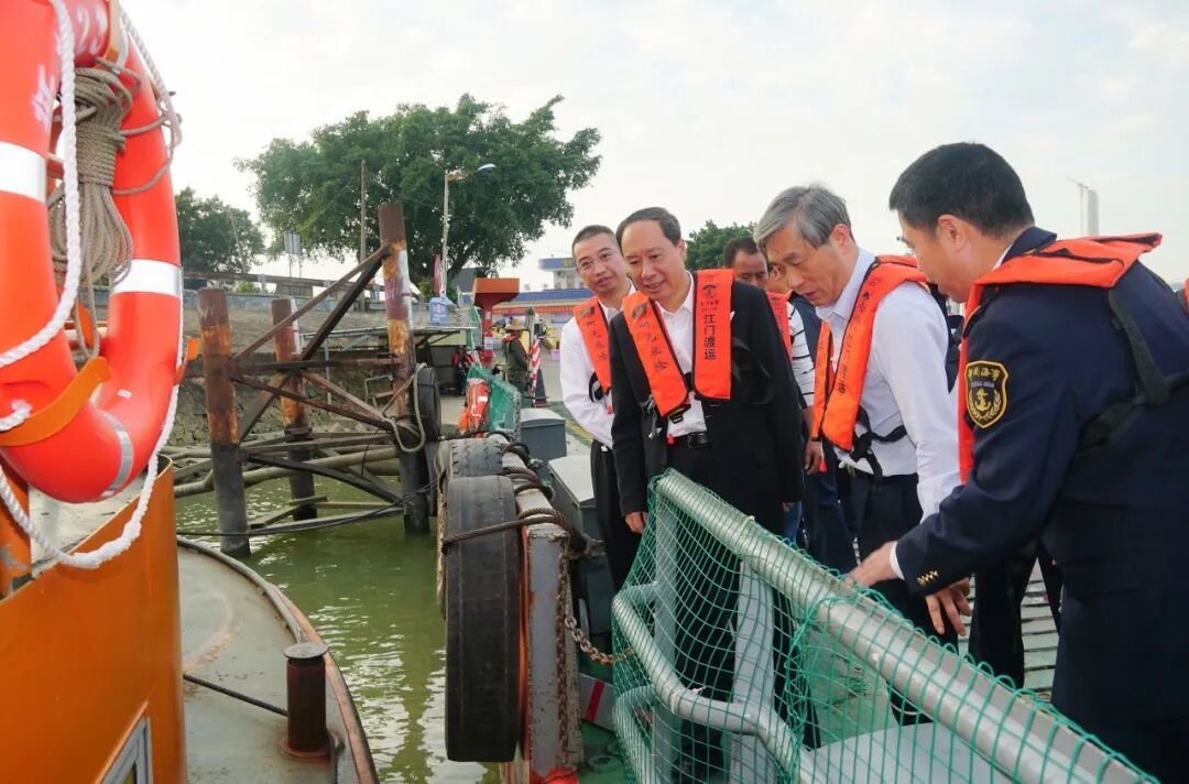 陈岸明来到大鳌镇新中渡口,详细听取新会区关于渡口渡船安全管理专项巡察整改情况的汇报、新中渡口整治情况的介绍,随后登上渡船,仔细检查了解船舶维护保养、安全设施配置及日常运行管理等情况,对新会区渡运领域专项整治取得的阶段性成效给予肯定。